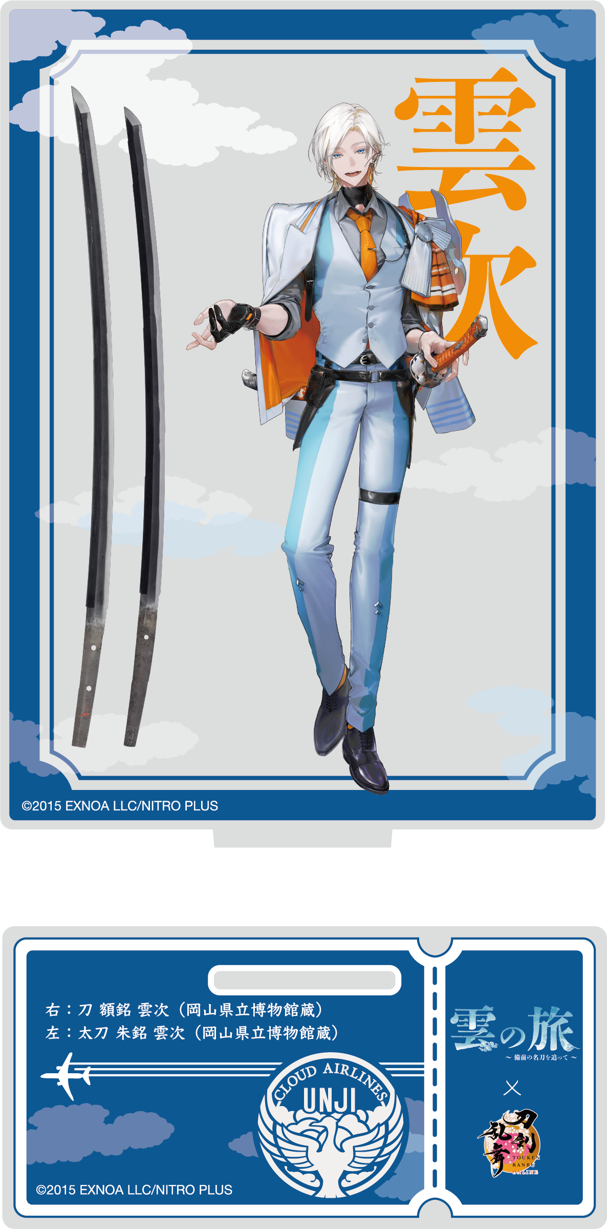 2025年8/28(木)~11/30(日)開催の岡山カルチャーゾーン40周年記念3館連携展示 雲の旅~備前の名刀を追って~において、名刀 雲生 雲次の展示を記念し製作された「刀剣乱舞ONLINE」とのコラボレーショングッズです。