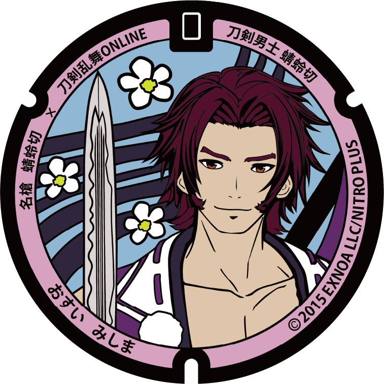 刀剣男士 蜻蛉切のマンホールデザインとなっております。