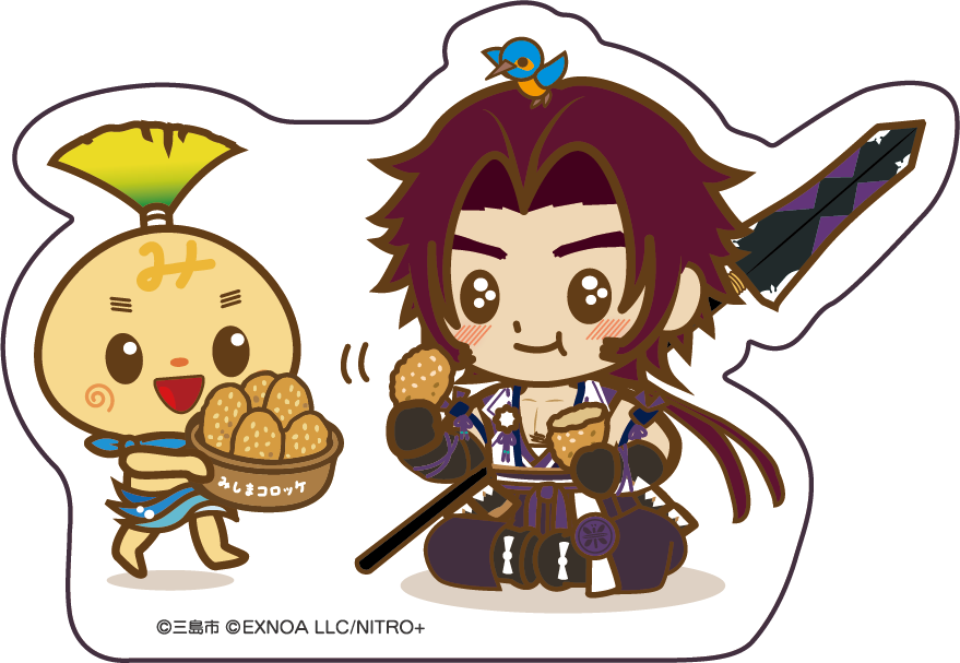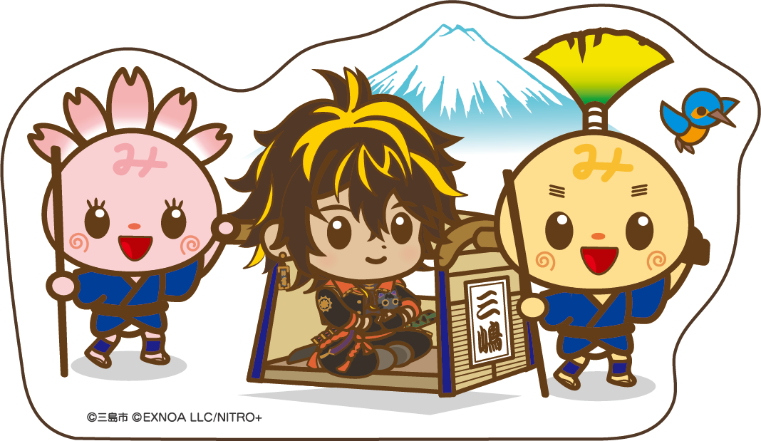 静岡県三島市のご当地キャラ「みしまるくん、みしまるこちゃん」とのコラボイラストを使用しています。